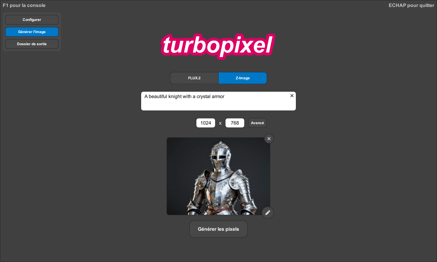 turbopixel est un générateur d'images basé sur Sky-runtime qui s'exécute localement au travers de modèles génératifs de pointe.